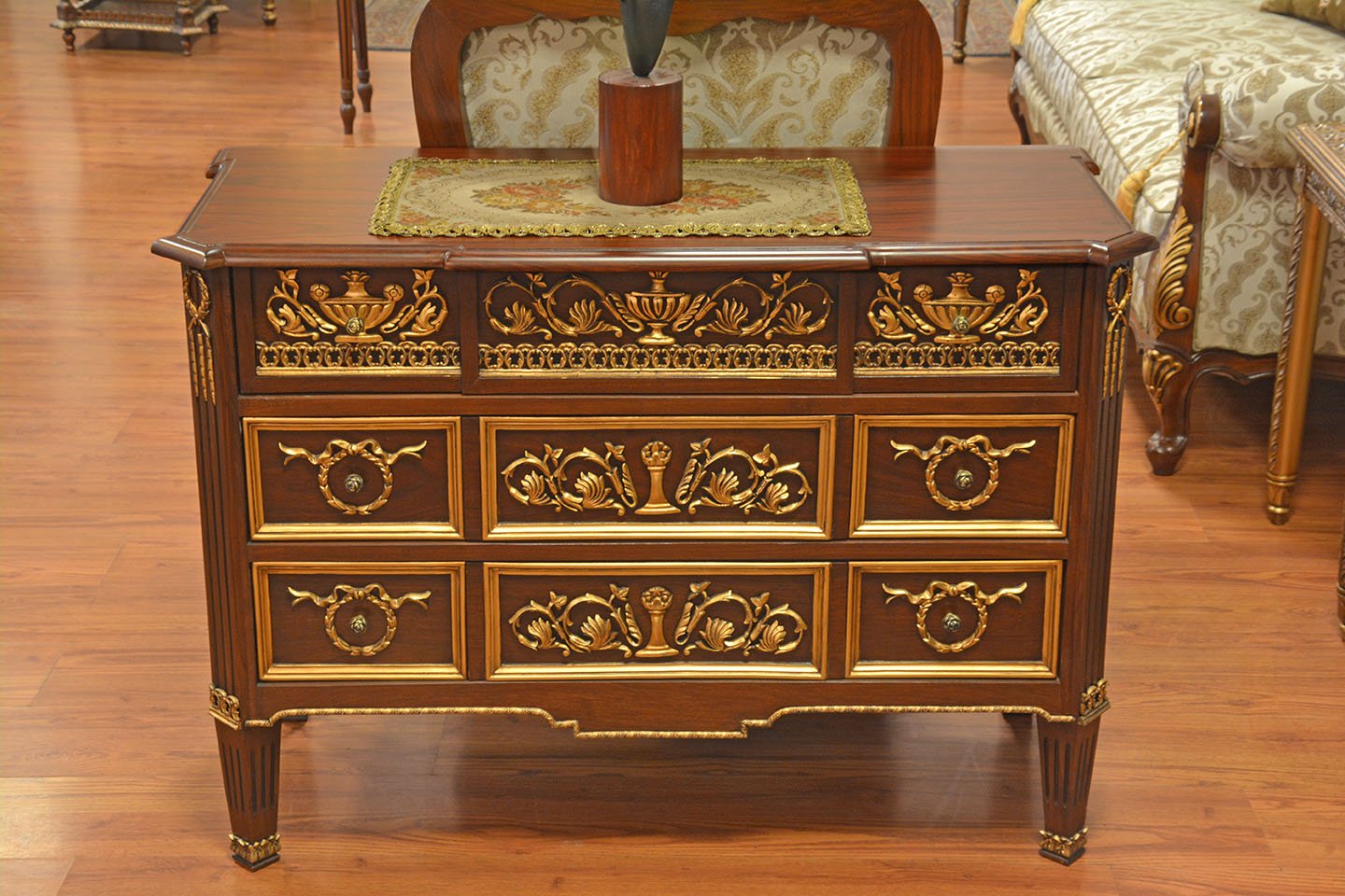 The exquisite hand-carved side board, crafted from premium Sheesham wood, features intricate detailing, gold-accented carvings, and a luxurious finish, reflecting timeless craftsmanship.