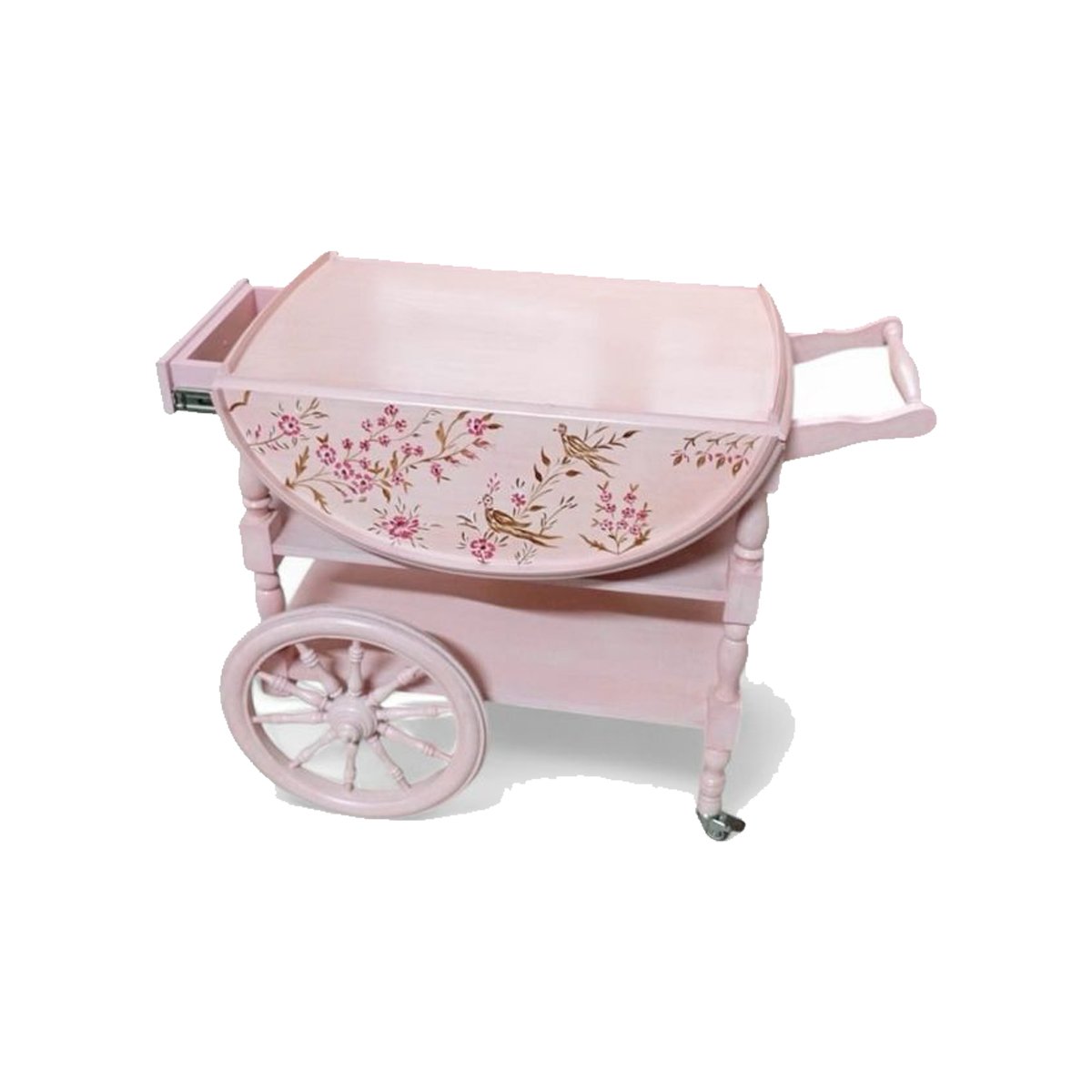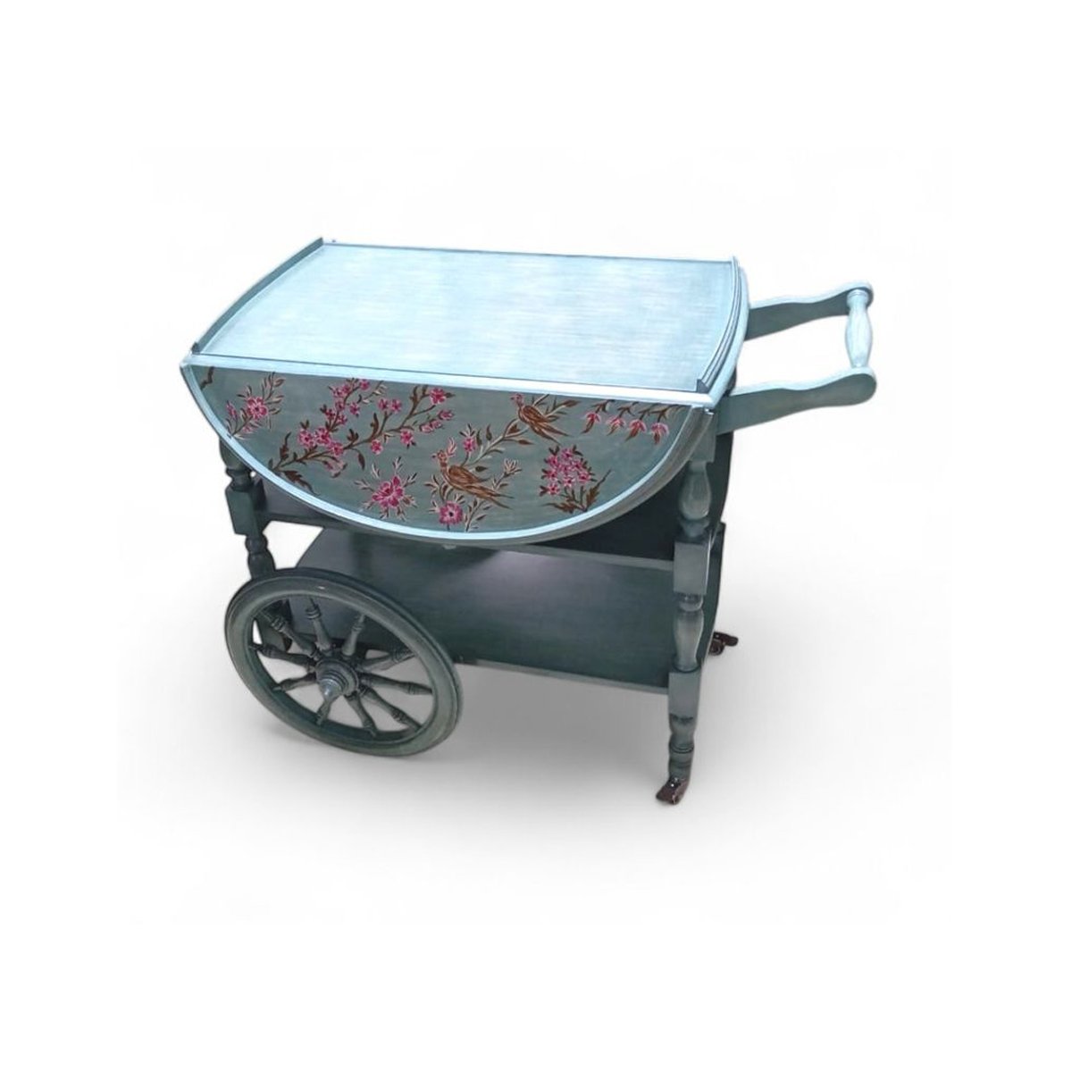 Add a touch of vintage elegance to your serving experience with our handcrafted Imperial Tea and Dessert Trolley. Made from premium wood and finished in a distressed turquoise blue and baby pink, this charming trolley features hand-painted floral detailing, giving it a truly regal appeal.