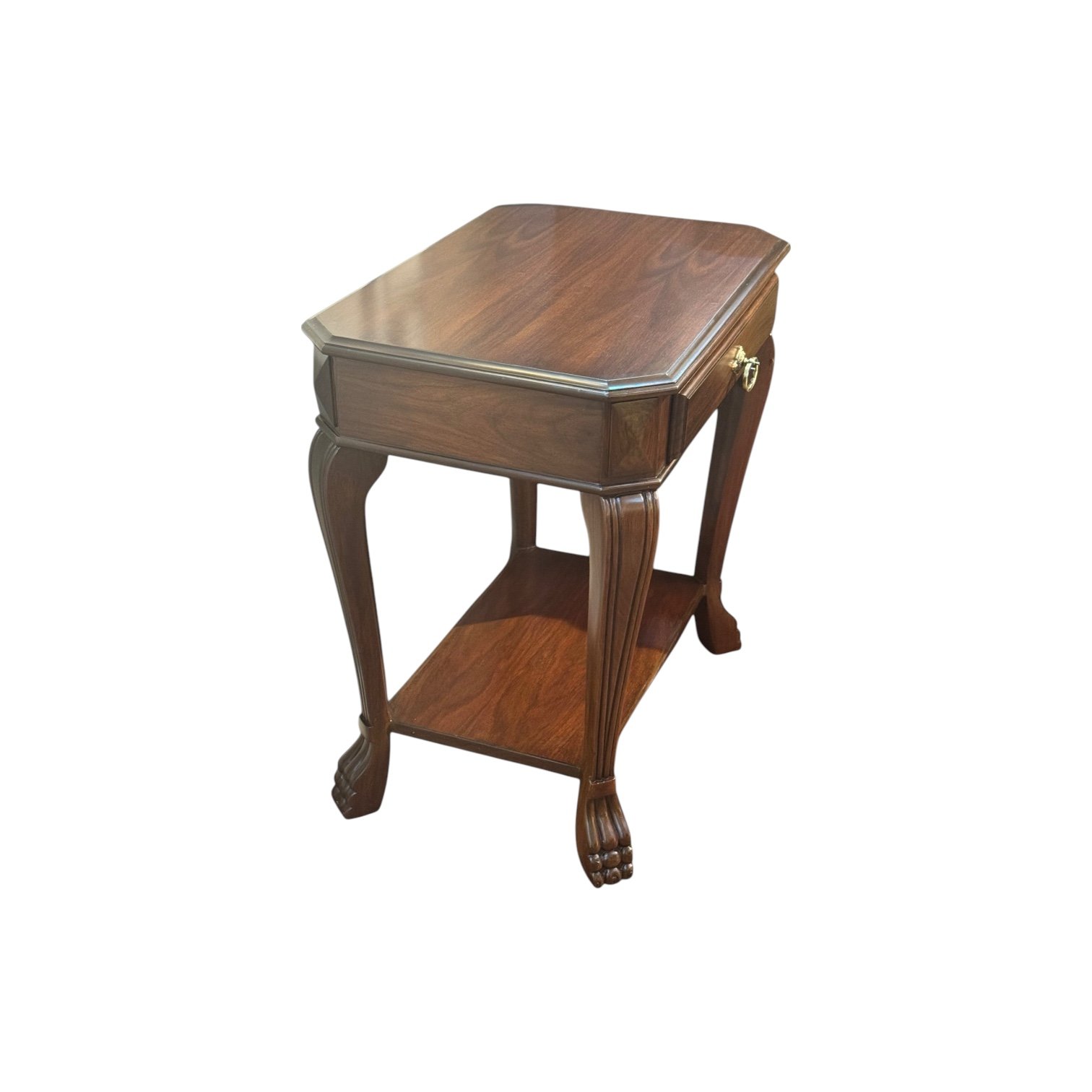 Finish: A mix of glossy and matte natural dark wood polish