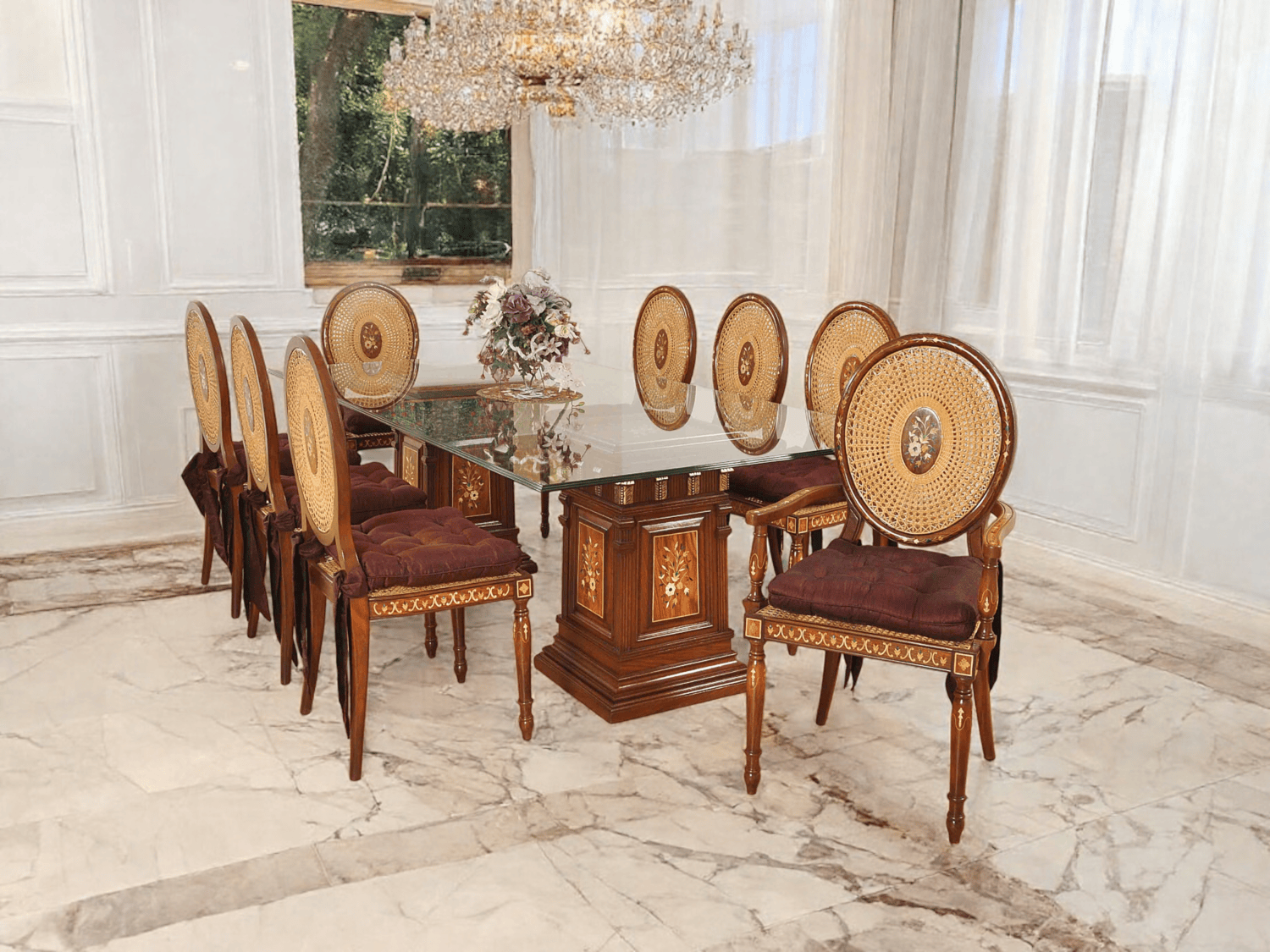 Dining Set includes the dining pedestals, glass top & 8 dining chairs.
