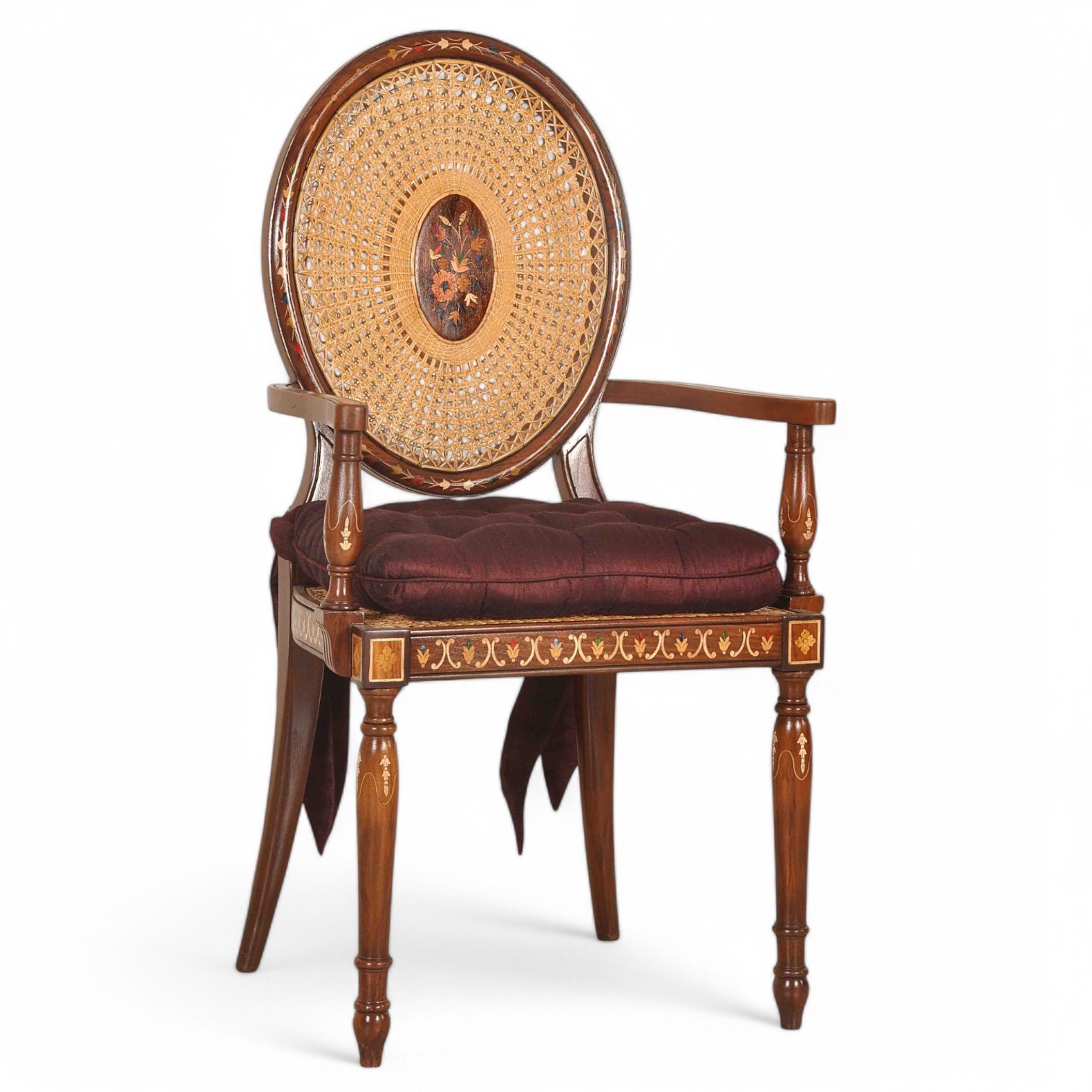 Material: Solid Sheesham, Sheesham Veneer, natural cane, assortment of woods for inlay
